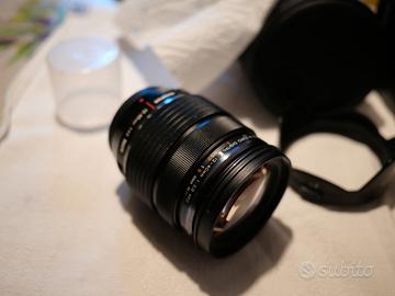 Olympus M.Zuiko 12-40 mm F2.8 PRO. Perfette condizioni (usato solo 2 volte); senza segni di usura. Completo di paraluce, tappo copriobiettivo, UV Filter. Sacchetto Olympus porta obiettivo e Scatola originali.