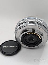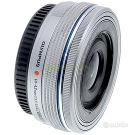 Obiettivo zoom Olympus M. Zuiko 14-42 mm F / 3.5-5.6 Pancake EZ colore Argento L'obiettivo è usato ma perfettamente funzionante In vendita: Obiettivo zoom Olympus M.Zuiko 14-42mm F/3.5-5.6 Tappo frontale originale Olympus Tappo posteriore no 12-45mm F/4 12-60mm 12-40mm 2.8 4 12-45 r