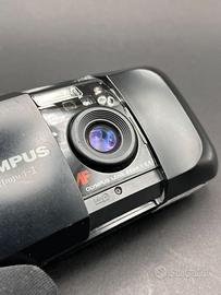 Ottima Olympus Mju 1 con il super nitido 35mm f/3.5 . Testata con pellicola e perfettamente funzionante. Corpo con pochissimi segni di usura, obiettivo pulito e senza graffi, flash funzionante.