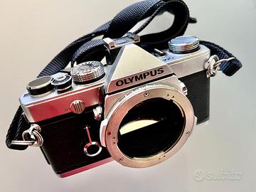 Fotocamera 35mm Olympus OM-1 con 3 obiettivi Zuiko 50mm f1.8, 28mm f2.8, 135 f3.5 (con astuccio) e relativi paraluce. Accessori: motore Winder 2, soffietto macro Seimax, tubi di prolunga 12,20,36 mm, lenti addizionali Seimax +1,+2,+3, anello di inversione, scatto flessibile 1,5 m, scatto flessibile 30 cm, cavo flash 11 m, 3 filtri UV, polarizzatore, starfilter, filtro 80B, sistema portafiltri Cokin con 3 anelli adattatori 49,55,58 e 2 filtri degradé blu e arancione. Manuali istruzioni: OM1 in inglese, Winder 2 in italiano. Garanzie Polyphoto Milano. Compresa borsa fotografica.