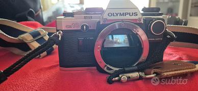 Olympus OM 10 con obiettivo 50mm; grandangolo zuyco Olympus 21 mm; zoom 70-250 Sigma; flash Megabliz; borsa compresa. Il tutto mantenuto con la massima accuratezza.