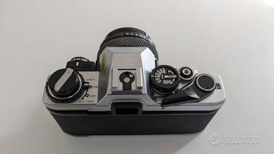 Il corpo macchina è in ottimo stato estetico e meccanico con pochissimi segni di uso. L'obiettivo è privo di graffi però ha della muffa visibile in controluce nell'ultima foto. Per il resto è perfettamente funzionante.