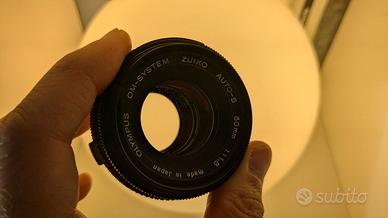 Vendo macchina fotografica analogica Olympus OM-10 dotata di Manual Adapter con obiettivo Zuiko Auto-S 50mm f/1.8, custodia e tracolla originale Olympus, libretto di istruzioni in italiano e documentazione originale.