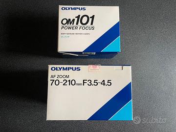 Vendo una Olympus OM-101 Powerfocus 50 mm + obiettivo Olympus esterno 70-210mm + flash elettronico T18 sempre Olympus.