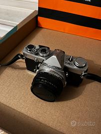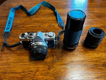 Vendo macchina fotografica analogica Olympus, modello Olimpus OM-1 n, con tracolla, set di due obiettivi e tubi di estensione.