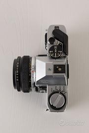 Vendo Olympus OM20 + 2 lenti (50mm 1.8 | 28mm 3.5) + pellicola Ilford Fp4 La macchina fotografica funziona perfettamente, l'ho usata fino a pochi giorni fa; la batteria è stata sostituita 2 mesi fa. Presenta normali segni di usura dati dagli anni ma a livello di meccanica e ottica è perfetta.