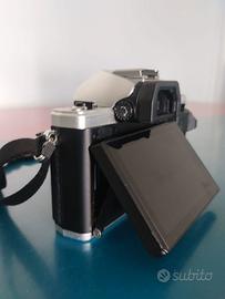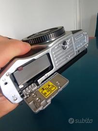 Fotocamera mirrorless Olympus OM-D E-M10 Mark II in ottime condizioni generali, testata e perfettamente funzionante. Scatola e imballaggio originali, libretto di istruzioni, batteria e caricabatterie + cavo per collegamento computer. Presenta un piccolissimo segno sull’angolo in basso a sinistra dello schermo, come da foto che non compromette il funzionamento. N. scatti: 10.765 Caratteristiche principali: Sensore CMOS Micro Quattro Terzi da 16,1 megapixel Stabilizzazione dell'immagine a 5 assi integrata nel corpo macchina (IBIS) Mirino elettronico (EVF) da 2,36 milioni di punti (ingrandimento 0,62x) Schermo LCD touchscreen inclinabile da 3" (1,037 milioni di punti) Video Full HD 1080p a 60p con autofocus continuo Scatto continuo a 8,5 fps, ISO 200–25.600, modalità P/A/S/M Wi-Fi, RAW, focus peaking