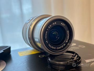 Vendo in kit Olympus OM-D E-M10 + obiettivo Zuiko 14-42 f3.5-5.6 R, con grip aggiuntivo originale, 2 batterie originali Olympus e 2 Patona, carica batteria Olympus, scatola originale e filtro polarizzatore Haida Slim Pro II MC. Sia corpo macchina che lente sono in ottime condizioni e perfettamente funzionanti. Vendo anche scorporati: corpo macchina a 190€ e lente a 95€.