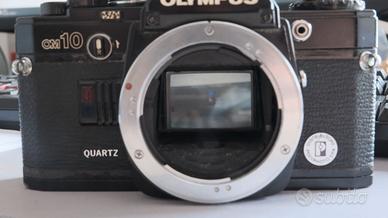 Olympus OM10 Quartz con spira di ritorno di scatto mancante. Il corpo macchina presenta qualche sverniciatura ma nel complesso è facilmente restaurabile, Anche i componenti interni sono buoni escludendo la molla mancante. Vendo solo in blocco