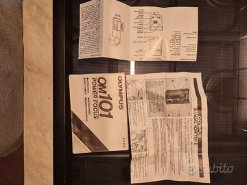 Olympus OM101 completa di zoom 50/70, di flash originale, un secondo flash, e soprattutto il Manual Adapter per usarla in modo professionale. Tutte le dotazioni hanno i manuali e le scatole originali.