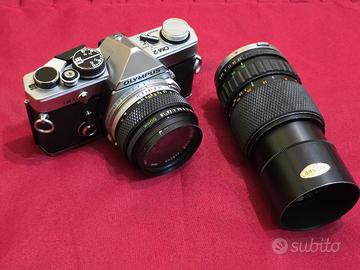 Bellissima Olympus OM2 con Zuiko 50mm 1.8 e zoom 75-150 Pochi segni di usura. Lenti pulite. Specchio, pentaprisma e schermo maf puliti. Esposimeteo funzionante. Funziona sia in manuale che in automatico (ha scattato con me più di 30 rullini ed esposizioni sempre corrette) Unica nota da segnalare: va fatto ricalibrare il tempo di 1 secondo (se si imposta il tempo di 1 secondo in manuale la macchina scatta ma rimane aperta e va portata a 1/4 per sbloccare) A me non ha mai dato fastidio perché non uso tempi lunghi ma il problema è risolvibile con pochi euro da un qualsiasi fotoriparatote. Le guarnizioni sono state cambiate 1 anno fa (quindi perfette) Preferisco ritiro di persona ma posso anche spedire