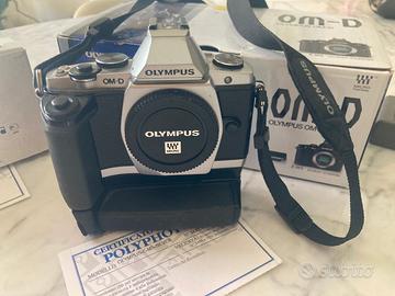 Per passaggio a nuovo modello vendesi ottima macchina fotografica semi-professionale , tropicalizzata , Olympus omd e5 argento originale Polypoto con 16.000 scatti . Completa di scatola originale , impugnatura con porta batteria aggiuntiva HLD-6 , flash FL-LM2 , cinghia originale , batteria e caricabatteria , set completo cavi e scatto a distanza, guscio protettivo in cuoio , obiettivo Fish-eye 9mm BCL-0980 9mm f8 . e obiettivo 15 mm f8 BCL-1580 lenscap.