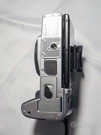 Vendo Olympus Omd Em1 corpo argento in ottime condizioni, quasi pari al nuovo con una lieve usura da contatto con la tracolla sullo sportellino laterale vano scheda. Confezione originale che include: flasch originale, batteria originale + una batteria di riserva, caricabatteria originale con cavo, cavo USB per collegamento al computer, cavo per scatto a distanza, tracolla originale mai usata, base / impugnatura in alluminio per collegamento al cavalletto tipo Arca Swiss.