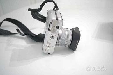 Olympus PEN E-PL2 fotocamera digitale mirrorless M 4/3 doppio zoom kit 14-42 / 40-150. Usata in condizioni perfette come nuova. Perfettamente funzionante. Viene fornito anche un kit di anelli di prolunga per macrofotografia manuale e anelli di raccordo per accessori con attacco a vite e Canon FD. Inoltre anche il manuale completo in italiano già stampato dalla versione digitale.