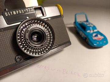 Bella Olympus PEN EE 2 in versione silver. Piccola fotocamera half frame ( 18x24 mm) dotata di un particolare obbiettivo di grande qualità, un 28 mm f 3.5, capace di scattare ben 72 fotogrammi con una classica pellicola da 36 pose.