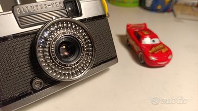 Bella Olympus PEN EE 3 in versione silver. Piccola fotocamera half frame ( 18x24 mm) dotata di un particolare obbiettivo di grande qualità, un 28 mm f 3.5, capace di scattare ben 72 fotogrammi con una classica pellicola da 36 pose. Restaurata, perfettamente funzionante, guarnizioni nuove, cablaggi nuovi, pulizia superficiale e profonda, mirino pulito e brillante, esposimetro perfettamente funzionante. In condizioni estetiche ottime, questa famosa piccola compatta è l’esempio più alto della fotografia point and shot. Esposizione totalmente automatica ed automatica è anche la messa a fuoco che si basa sull iperfocale. Un gioiello che non dovrebbe mai mancare nelle tasche, visto l’ingombro così ridotto, di ogni bravo fotografo. Le sue doti indiscusse ed anche la qualità ottica sono un punto fermo, per coloro che amano la lomografia ma anche le foto di street.