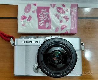 Comprato usato da privato, una lama già a tutta apertura, rende la PEN una compatta, entra in una tasca di un pantalone da tuta (vedere foto affiancata ad un pacchetto di fazzoletti ed Iphone), buone condizioni estetiche, perfettamente funzionante, anche con il tracking a differenza di quanto si legge in giro. Completo di scatola, tappo anteriore e posteriore originali, paraluce after market in metallo.