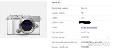 Condizioni eccellenti, acquistata su sito OM System, in garanzia fino al 24/12/2026.