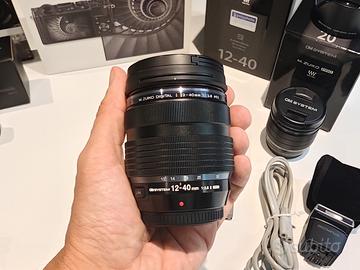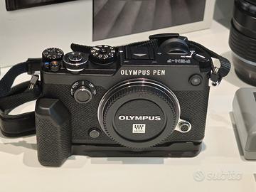 Olympus Pen-f nera limited edition pari al nuovo. L'inserzione comprende la fotocamera, la tracolla originale, il flash originale, il carica batterie e due batterie originali, la cavetteria originale, il manuale originale, il grip in metallo e gomma originale, il libro a colori illustrato con le tecniche fotografiche suggerite espressamente per la Pen-f, protezione grip in pelle nera, obiettivo Zuiko Digital Pro-line 20mm f1.4, obiettivo Zuiko Digital Pro-line 12-40mm f2.8 Mk2 entrambi nelle loro custodie originali con paraluce e sacchetta in pelle. Tutti gli imballi originali in eccellenti condizioni. Tutte le elettroniche pari al nuovo senza alcun segno, graffio, ammaccatura. Dedicato ai cultori collezionisti del micro 4:3. La Pen-f in finitura nera completa di tutto e nelle condizioni dell'esemplare in prova è ormai introvabile almeno in Italia.