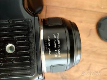 fotocamera reflex analogica Olympus Om 101 Power Focus. con obiettivo Olympus 50mm 1.8. macchina tenuta in ottime condizioni estetiche, funzionante. funziona con 4 mini stilo. il vano batteria é stato pulito.