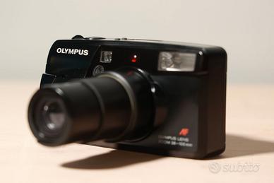 OLYMPUS SUPER ZOOM 35 MM FILM CAMERA FUNZIONANTE CON BATTERIA NUOVA E PELLICOLA NUOVA