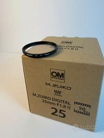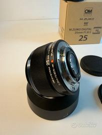 Obiettivo Olympus OM System Obiettivo M.Zuiko Digital 25 mm F1.8 II pari alnuovo, utilizzato una sola volta. Ricevuta di acquisto attestante garanzia fino a luglio 2027. Vendo per passaggio ad altro sistema. In omaggio filtro UV Neewer.