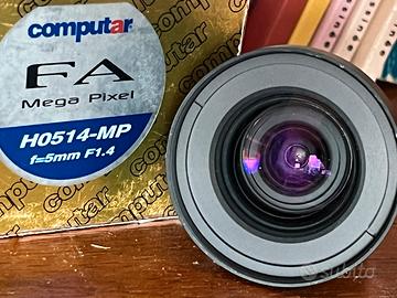 Obiettivo 5mm f 1.4 Computar attacco a vite passo C. Made Japan, nuovo.