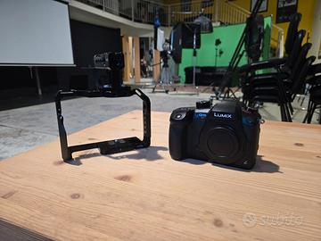 Panasonic GH5S, usata pochissimo sempre in studio e solo per video. Sono inclusi i seguenti accessori: 3 batterie, due caricabatterie, Speedbooster Viltrox per obiettivi Canon EF, Cage Smallrig + maniglia. Lumix, GH5, Camera 4K.