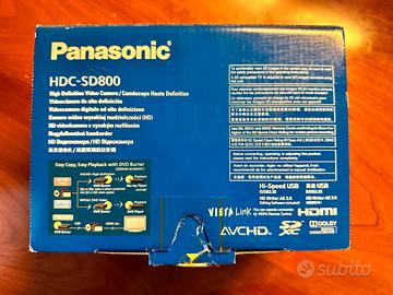 Vendo video camera Panasonic HDC-SD800 con sensore video a 3 ccd MOS 14.2 Mega pixel. La camera è perfettamente funzionante con l'eccezione della batteria che va sostituita (si trova facilmente in rete a circa 25€ includo scheda di memoria SDHC da 8 GByte, scatola originale, alimentatore, libretto, SW originale e borsa da viaggio imbottita.