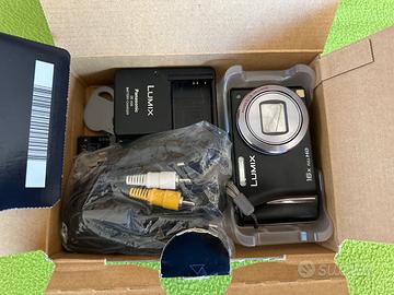 Fotocamera digitale compatta Panasonic DMC-TZ20 made in Japan, lenti Leica, 3 batterie e memoria inclusa, caricabatterie presente, come i cavi di collegamento.