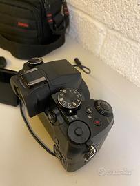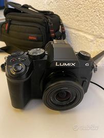 Panasonic Lumix DMC-G80 + Obiettivo 12-32mm | Mirrorless 4K Stabilizzata Descrizione Metti in vendita la tua creatività con questa splendida Lumix G80, una macchina fotografica versatile, robusta e perfetta per chi vuole passare dallo smartphone a una qualità professionale. È la scelta ideale per Vlogger, YouTuber e fotografi di viaggio grazie alla sua eccezionale stabilizzazione interna e al corpo tropicalizzato. Caratteristiche principali: Video 4K: Riprese ultra-definite con funzione 4K Photo per non perdere mai l'attimo. Doppia Stabilizzazione (Dual I.S. 2): Il sensore stabilizzato lavora insieme all'ottica per video fluidi anche senza gimbal. Sensore Digital Live MOS da 16 MP: Senza filtro passa-basso per immagini nitidissime. Mirino OLED e Schermo Flip: Display touch orientabile in ogni direzione, fondamentale per i selfie e le inquadrature difficili. Corpo Tropicalizzato: Resistente a schizzi d'acqua e polvere, pronta per ogni avventura. Obiettivo incluso: Lumix G Vario 12-32mm f/3.5-5.6 ASPH MEGA O.I.S., ultra compatto e versatile. Stato dell'oggetto: La macchina è in ottime condizioni estetiche e funzionali (vedi foto). Sensore pulito, lenti senza graffi e meccanica perfetta. Utilizzata con estrema cura. Cosa riceverai: Corpo macchina Panasonic Lumix DMC-G80 Obiettivo Lumix 12-32mm con tappo originale Batteria e caricabatteria Tracolla originale Custodia morbida per il trasporto (visibile in foto)
