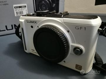 VENDO fotocamera PANASONIC LUMIX DMC - GF1 ( solo corpo): camera mirrorless con sensore 4/3. Vendo completa di tappo sensore, 2 batterie originali, caricabatterie e scatola originale.