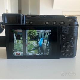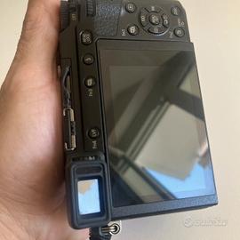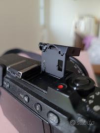 Panasonic Lumix DMC-GX80 fotocamera digitale. Solo corpo. Perfettamente funzionante, difetto sul flash, presenta una piccola ammaccatura che ha danneggiato solo la plastica sulla parte superiore. Il flash non è in alcun modo compromesso, si alza perfettamente dritto e funziona al 100%. L'unico danno riguarda il cappuccio di plastica. Ia caricabatterie originale non è più disponibile, ma è incluso un caricabatterie non originale. Non ci sono segni o graffi a parte il danno al cappuccio del flash. L'obiettivo non incluso, solo corpo macchina