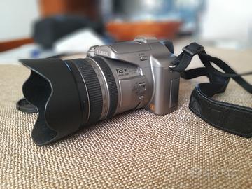 Panasonic Lumix FZ50 reflex bridge con ottica Leica 35-420. Oggetto in ottime condizioni perfettamente funzionante con solo 3072 scatti. Annessi batteria con caricatore, tappo obiettivo, cinghia e borsa Samsonite come da foto. Vendo a € 40 per inutilizzo. Non spedisco, solo ritiro in loco.