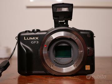 Vendo poiché ne ho due, Lumix GF3 perfettamente funzionante. Sistema Micro4/3.Piccolissima, pesa circa 270 gr con batteria. Presenta evidenti segni di utilizzo come evidenziato in foto. La cedo con scatola originale, tracolla Lumix, caricabatterie e batteria originali.