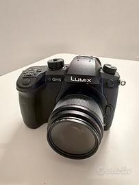 Videocamera Panasonic Lumix GH5 in condizioni ottime + ottica Leica Lumix DG Vario-Elmarit 12-60mm f2.8 con paraluce + ottica Lumix G 25mm f1.7 con paraluce + 6mm fisheye f1.8 + ottica 25mm con extra bokeh f1.4 + 3 batterie + due caricatori americani + custodia ottiche