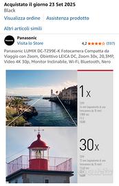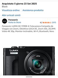 Come da descrizione, vendo fotocamera Lumix con meno di 200 scatti. A corredo cover in silicone. Prezzo non trattabile, la macchina è in condizioni perfette.