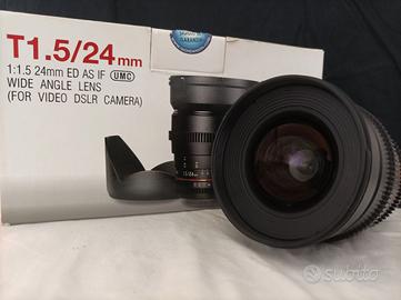 Obiettivo Samyang 24mm f/1.5 versione cinematica con ghiere dentate (senza paraluce)