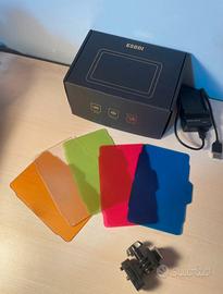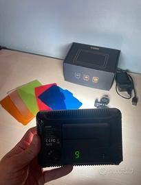 Ideale per foto e video, perfetta per contenuti social, ritratti e riprese in generale Inclusi supporto per montaggio su fotocamera/treppiede, scatola originale, caricabatterie, batteria e 5 pannelli colorati per creare diverse sfumature di luce Condizioni perfette usata una volta e mai più Spedizione veloce