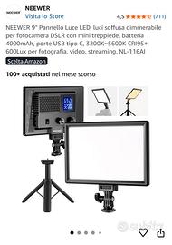 NEEWER 9" Pannello Luce LED, luci soffusa dimmerabile per fotocamera DSLR con mini treppiede, batteria 4000mAh, porte USB tipo C, 3200K~5600K CRI95+ 600Lux per fotografia, video, streaming, NL-116AI - NUOVO, MAI USATO CAUSA ERRATO ACQUISTO