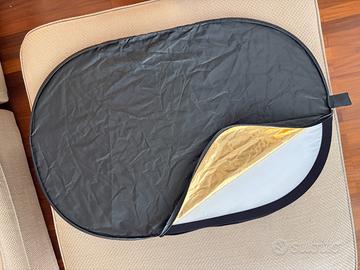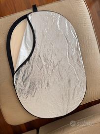Pannello riflettente 5 in 1 Neewer 90x60cm. 5 possibilità: argento, oro, bianco, nero e trasparente. Nuovo, mai usato. Diametro chiuso 31cm. Possibile ritiro a mano a Milano. Prezzo non trattabile, grazie. Se annuncio online, ancora disponibile.