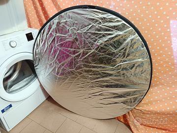 Pannello riflettente per foto, doppio lato, argento/oro, richiudibile. Diametro 110 centimetri