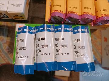 8 pellicole Fotografiche scadute, l'annuncio comprende: 1 Ilford Panf 50 scad. 04/2006 2 Ilford FP4 125 scad. 07/2006 e 08/2006 4 Fujichrome Velvia 100 scad. 11/2007 4 Kodak Portra 400 scad. 01/2008 Essendo scadute da diversi anni non si garantisce la resa perfetta delle pellicole