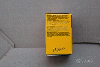 Vendo lotto pellicole negativi 120 e 35 mm mai aperte e conservate sempre nel frigo, con le seguenti scadenze: 1x IlFORD XP2, formato 120, scadenza 08/2024, euro 10,00 ------ 1X ILFORD XP2, formato 120, scadenza 02/2026, euro 12,00; ------ 2x KODAK TC400 CN, formato 120 (sviluppo C41), scadenza 10/2003, euro 10,00 cad; ------ 2x KODAK GOLD200, formato 35mm, scadenza 09/2027, euro 12,00 cad; ------ 1x KENTMERE PAN 400, formato 35mm, scadenza 12/2029, euro 10,00; ------ 1x KODAK TMAX400, formato 35mm, scadenza 05/2025, euro 10,00. ------ Prezzo intero lotto: euro 75,00 Spedizione con TuttoSubito.