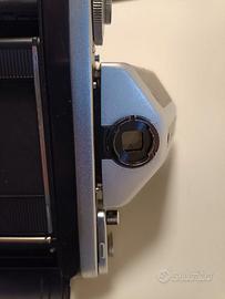 Pentacon Six con pentaprisma ed obiettivo Jena 80 - f2.8. In buone condizioni estetiche. Perfettamente funzionante. Come tutte le Pentacon Six tende a sovrapporre i fotogrammi, io ho risolto (guardando un tutorial su youtube) tendendo molto bene la pellicola in fase di caricamento. Con custodia originale. Non ha bisogno di batterie, completamente meccanica.