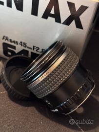 Vendo causa inutilizzo, Lente pentax 645 FA 45MM Per pentax 645n e 645nii Completa di scatola, Tappo anteriore e posteriore. In buone condizioni, Testata e perfettamente funzionante. Segni di pulizia sulla lente frontale, il quale non influisce sull’immagine finale.