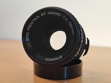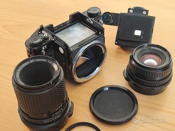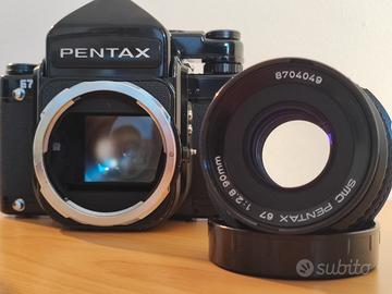 Vendo macchina fotografica medio formato 6x7 Pentax 67 con due obiettivi, un Pentax SMC 90mm f2.8 un Pentax SMC135mm macro f4 più il pentaprisma esposimetrico. Entrambi gli obiettivi sono gli ultimi modelli prodotti per la 67, 67ii o per la Pentax 6x7
