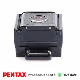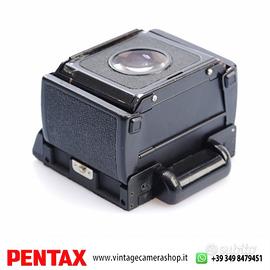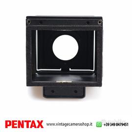 Pentax 6x7 Waist-Level Finder mirino a pozzetto originale per sistema PENTAX 6x7 / 67 medio formato. Accessorio intercambiabile progettato per sostituire il pentaprisma standard, offrendo una visione diretta dall’alto con immagine luminosa e dettagliata sul vetro smerigliato.