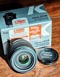 Vendo Pentax-D FA 28-105mm f3.5-5.6 ED DC WR (zoom full-frame, water-resistant, attacco Pentax K), comprensivo di confezione originale, paraluce Pentax PH-RBC62, tappo anteriore da 62mm, tappo posteriore. Consegna a mano su Milano o Monza.