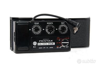 ASAHI PENTAX DIAL DATA ME Dorso Datario DEDICATO ALLE REFLEX ANALOGICHE PENTAX PK ME - ME SUPER anche MV - MV1 (con Hotshoe Adaptor 2P) ***In Ottime Condizioni e Funzionante*** OGGETTI COMPRESI ASAHI PENTAX DIAL DATA ME (ANNI DAL 1980 AL 1990) (la fotocamera in foto non è inclusa) STATO DEGLI OGGETTI DIAL DATA ME FUNZIONANTE E IN CONDIZIONI OTTIME. CONTATTI BATTERIE PULITI, CAVETTO INTEGRO. SEGNI D’USO ESTERNI PRATICAMENTE ASSENTI. DESCRIZIONE Il PENTAX DIAL DATA ME è un accessorio progettato specificamente per le fotocamere Pentax ME ed ME Super (funziona anche su MV e MV-1 con Hotshoe Adaptor P2) che consente di registrare nell'angolo del fotogramma varie informazioni. Si agisce su tre rotelle che permettono di indicare la data dello scatto e il diaframma e il tempo usati. Le combinazioni possibili sono numerose e per varie necessità di marcatura. E' dotato di spia di controllo delle batterie e di selettore della sensibilità della pellicola. *** IN VENDITA ALTRI ARTICOLI FOTOGRAFICI, GUARDA I MIEI ANNUNCI ***